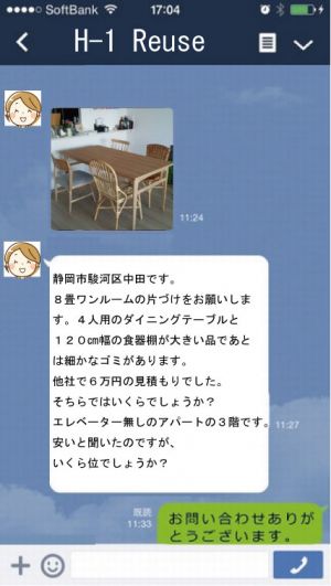 見積もりしたい物や部屋の写真をいつも友達と送っているようにお送りください。