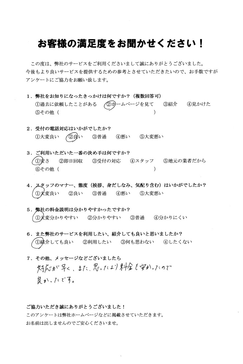 対応が早く、また、思ったより料金も安かったので良かったです。