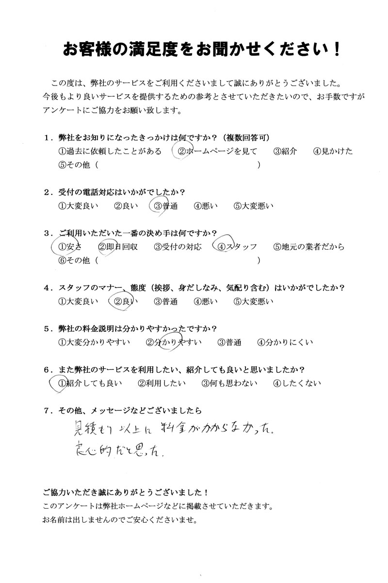見積もり以上に料金がかからなかった。